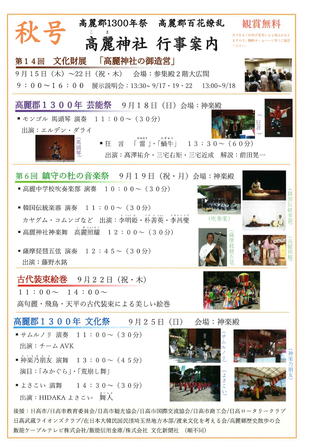 9月18日(日): 高麗郡1300年 芸能祭