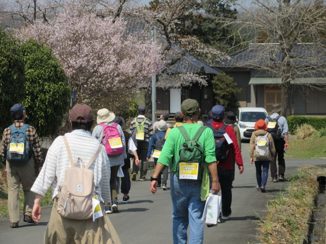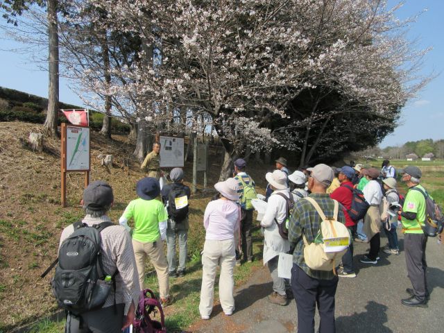 好天に恵まれウオーク日和となった3月29日(日)9時、東武東上線「坂戸駅・南口」を出発、12キロの歴史ウオークが始まりました。参加者は総勢33名。今回も日本高麗浪漫学会の加藤恭朗先生が同行、特に坂戸市内の遺跡について詳しく解説してくださいました。